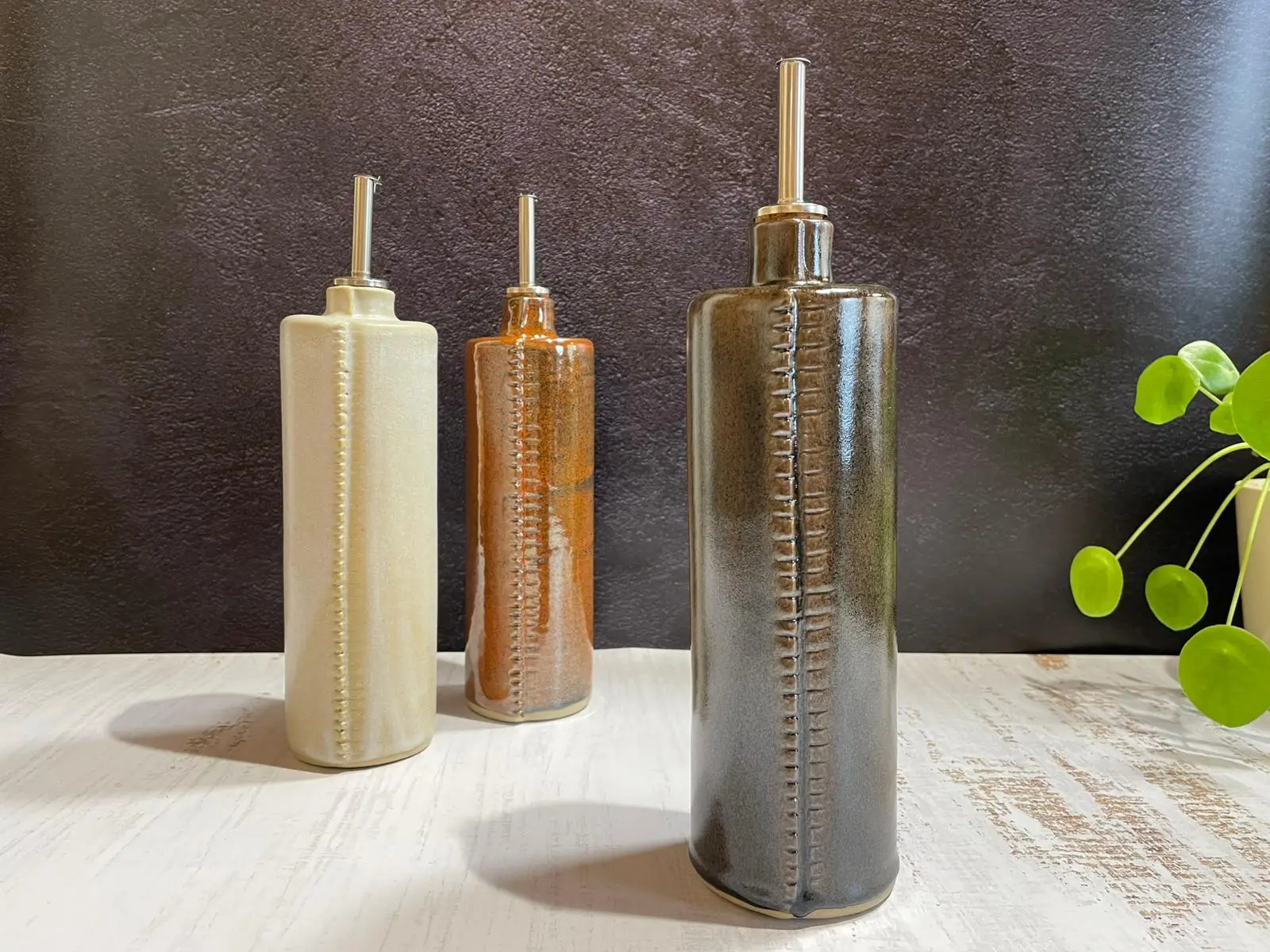 Cette bouteille en grès artisanal apportera une touche d’authenticité à votre cuisine. Parfaite pour l’huile d’olive ou le vinaigre, elle protège vos préparations de la lumière tout en sublimant votre plan de travail.